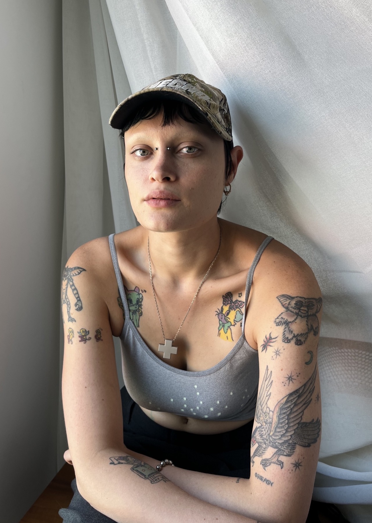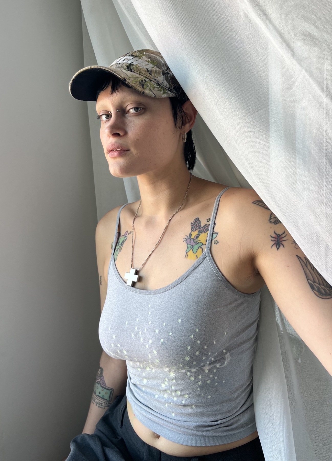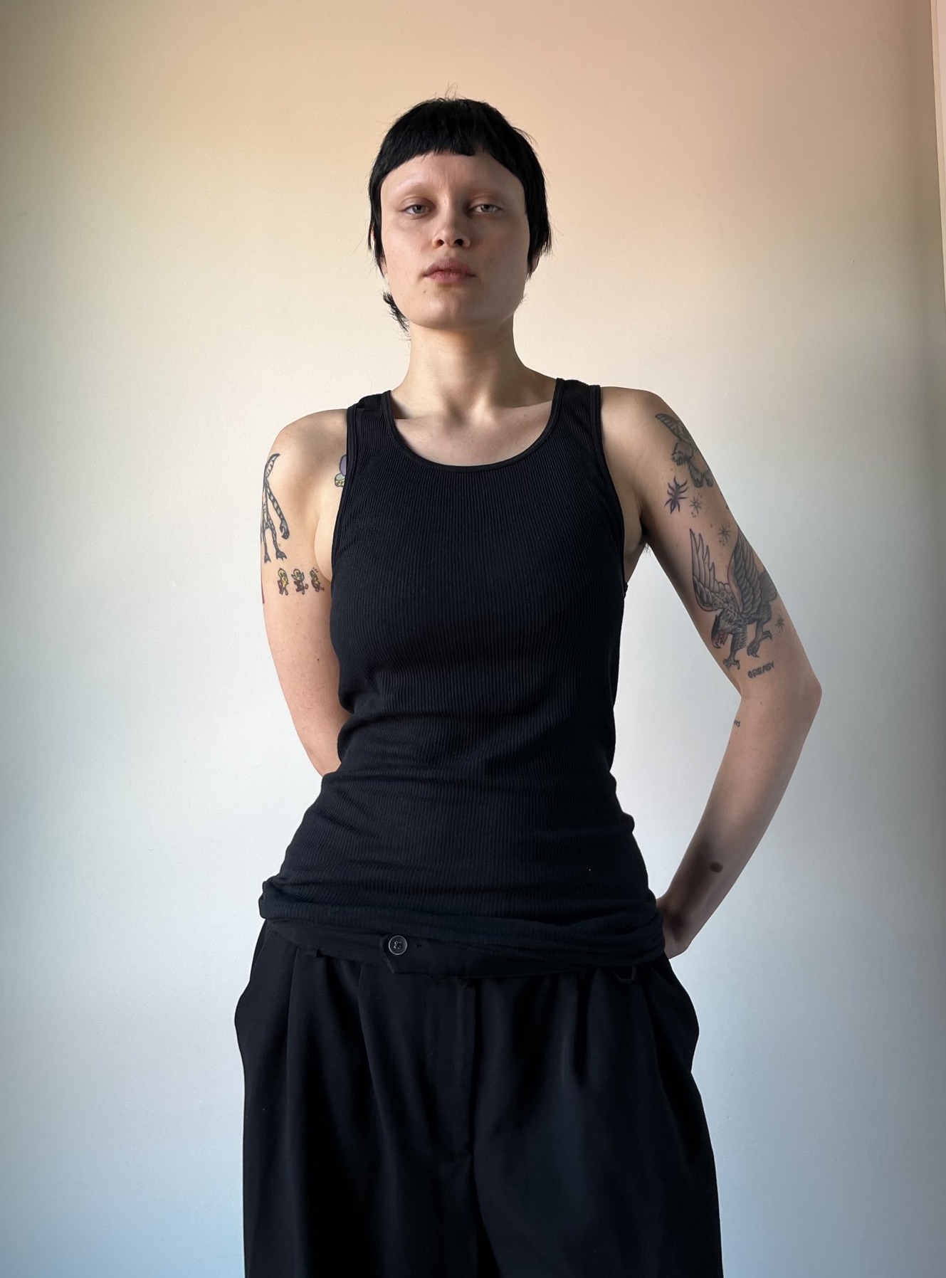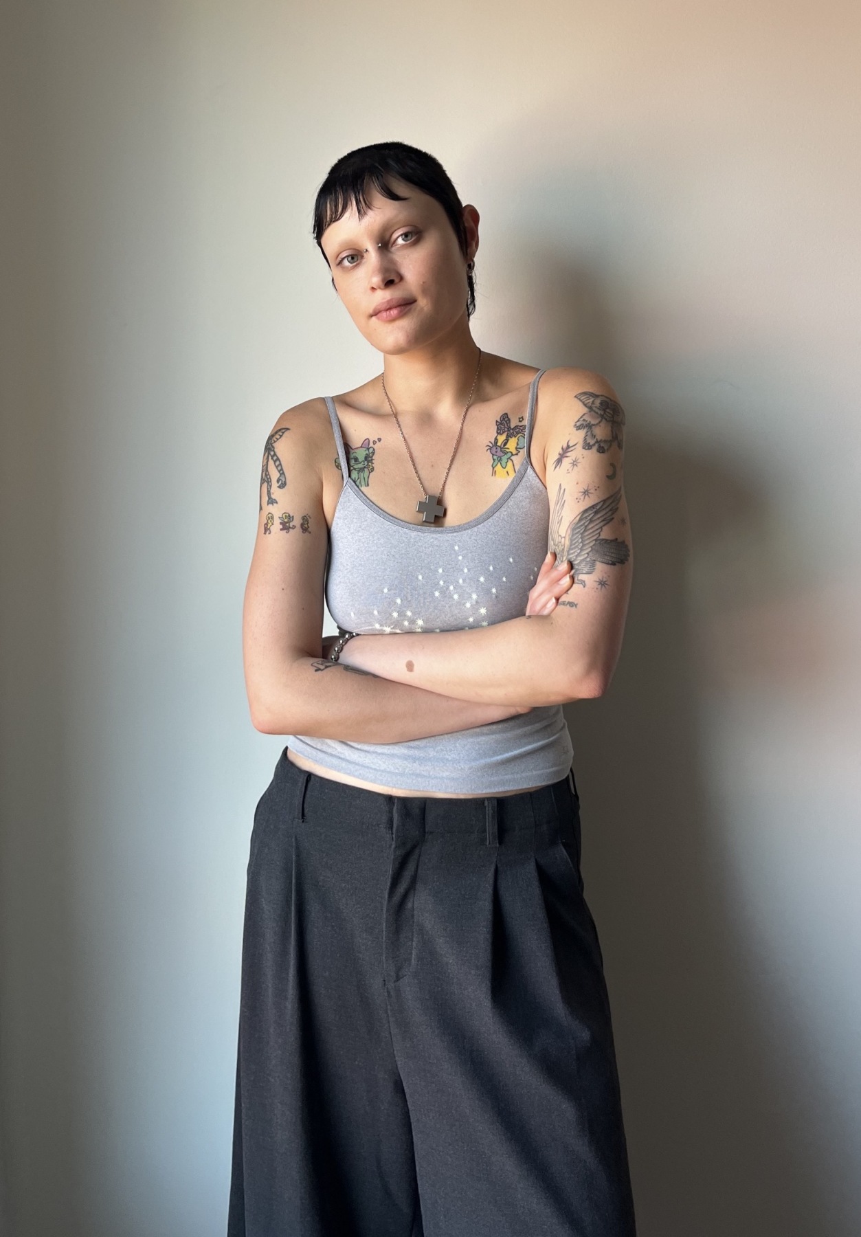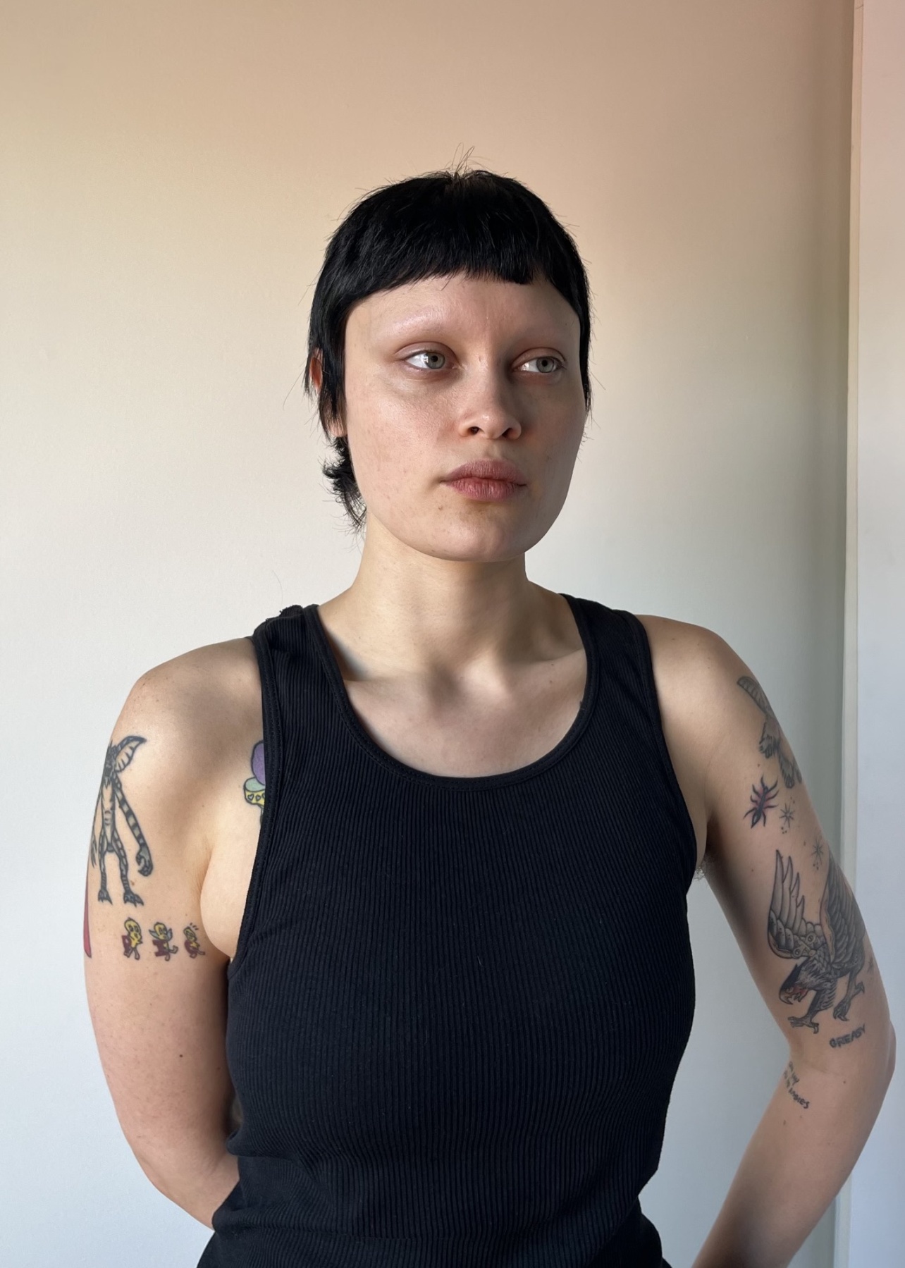 I’m Gina! I’m from Amsterdam and Curaçao, a small island in the Caribbean. I studied writing and English literature. I now work at a vintage store in Victoria that specializes in antique garments (sometimes I get the chance to help restore these). I also organize lesbian events in the city with the event organizing team I run, I Love My Wife Productions—including a yearly lesbian jello wrestling tournament and a more frequent leatherdyke club night. I love reading, sewing, and cooking for my friends.